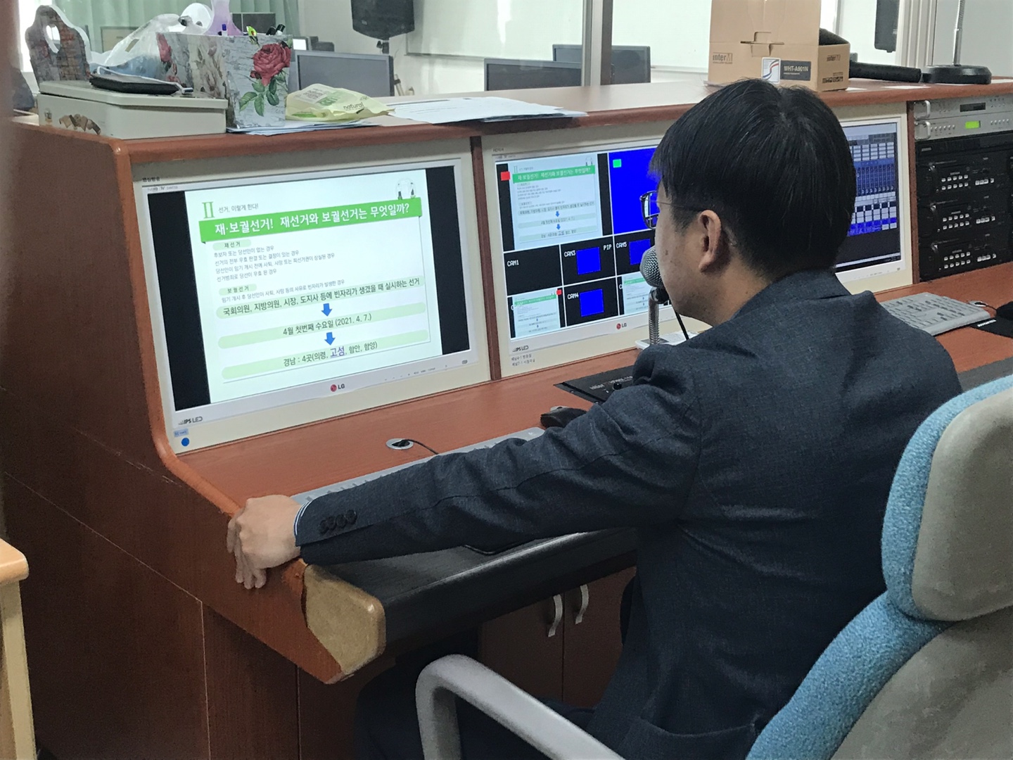 창체시간을 통해 학생들에게 유권자 교육을 하고 있는 강사님의 모습을 담았습니다.