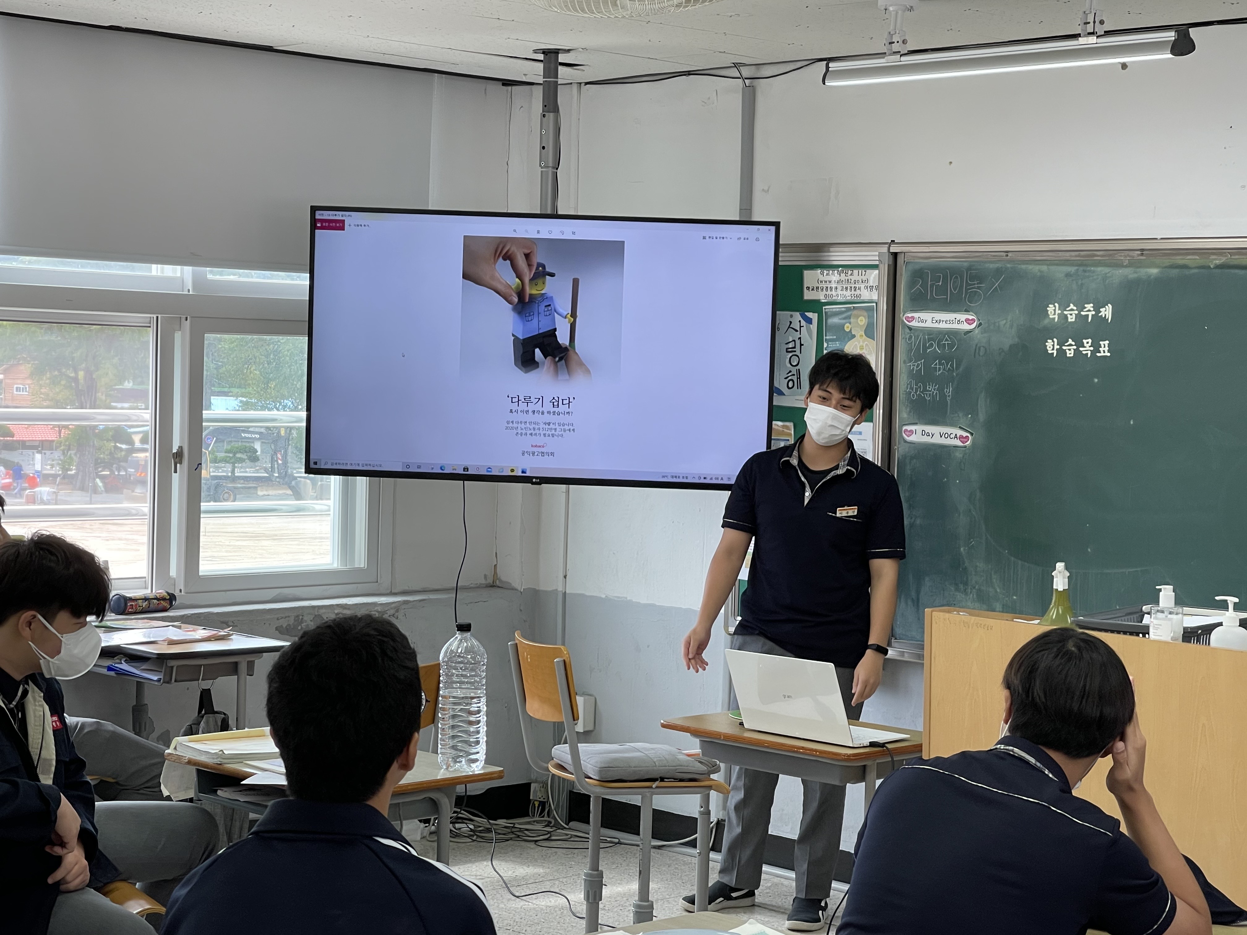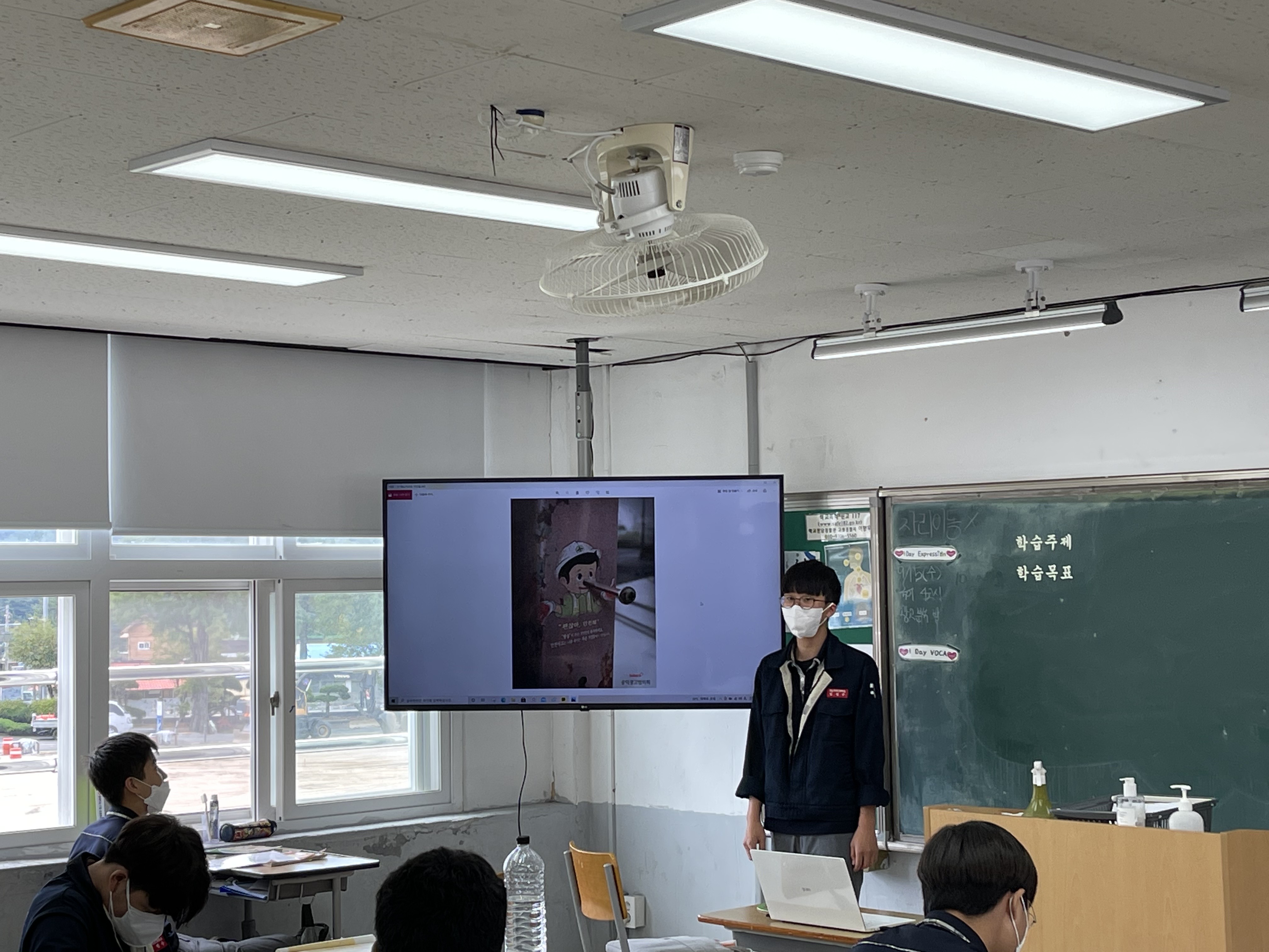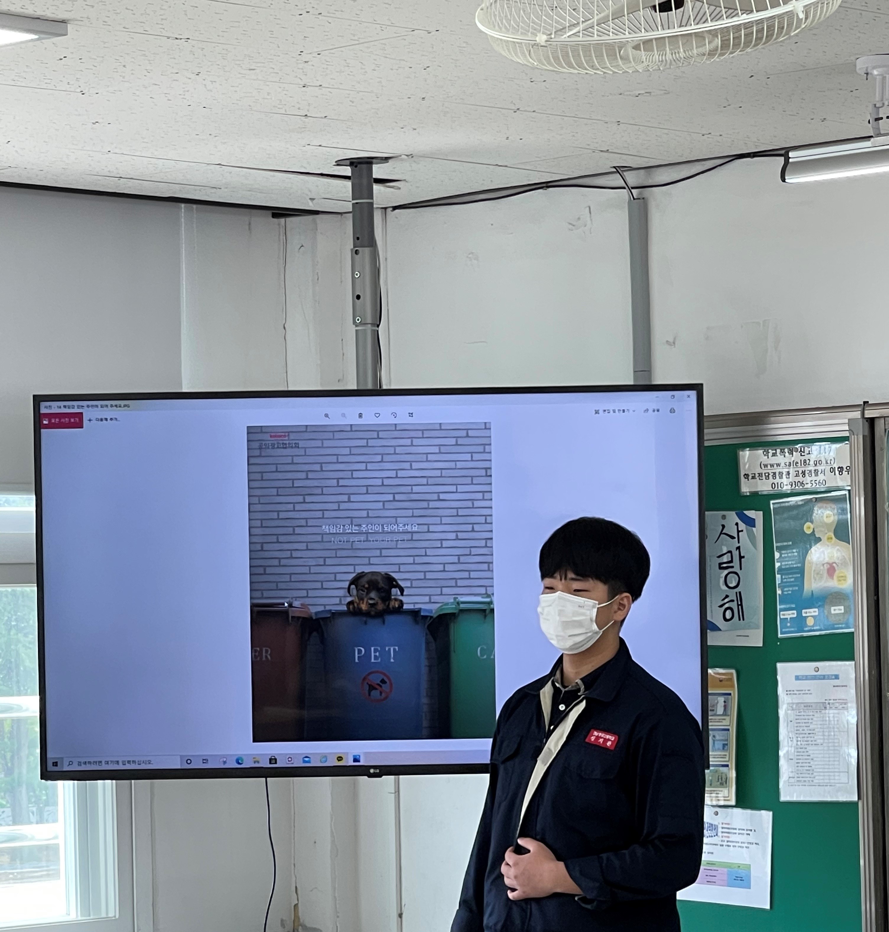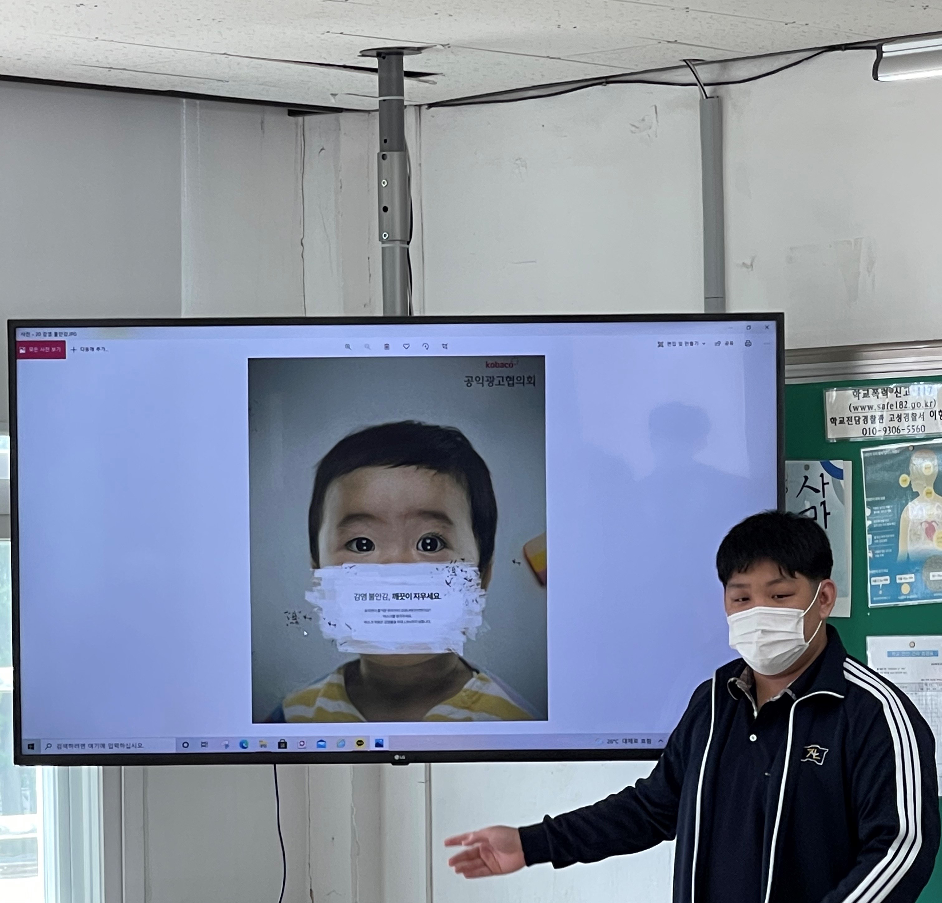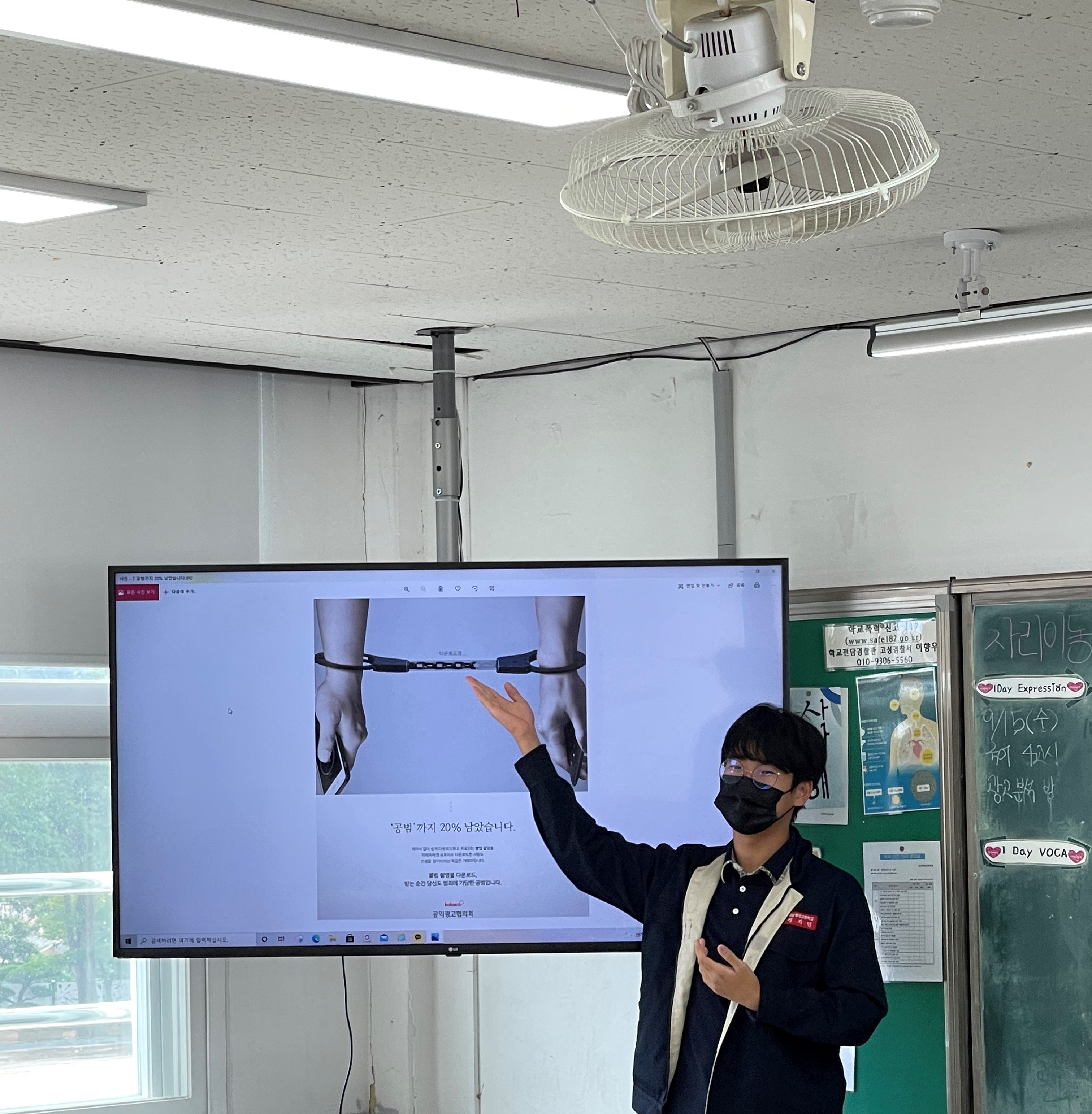 1학년 국어 시간에 다양한 공익 광고 포스터를 분석하는 활동을 했습니다. 그리고 각자 분석한 내용을 친구들 앞에서 발표하는 시간을 가졌습니다.