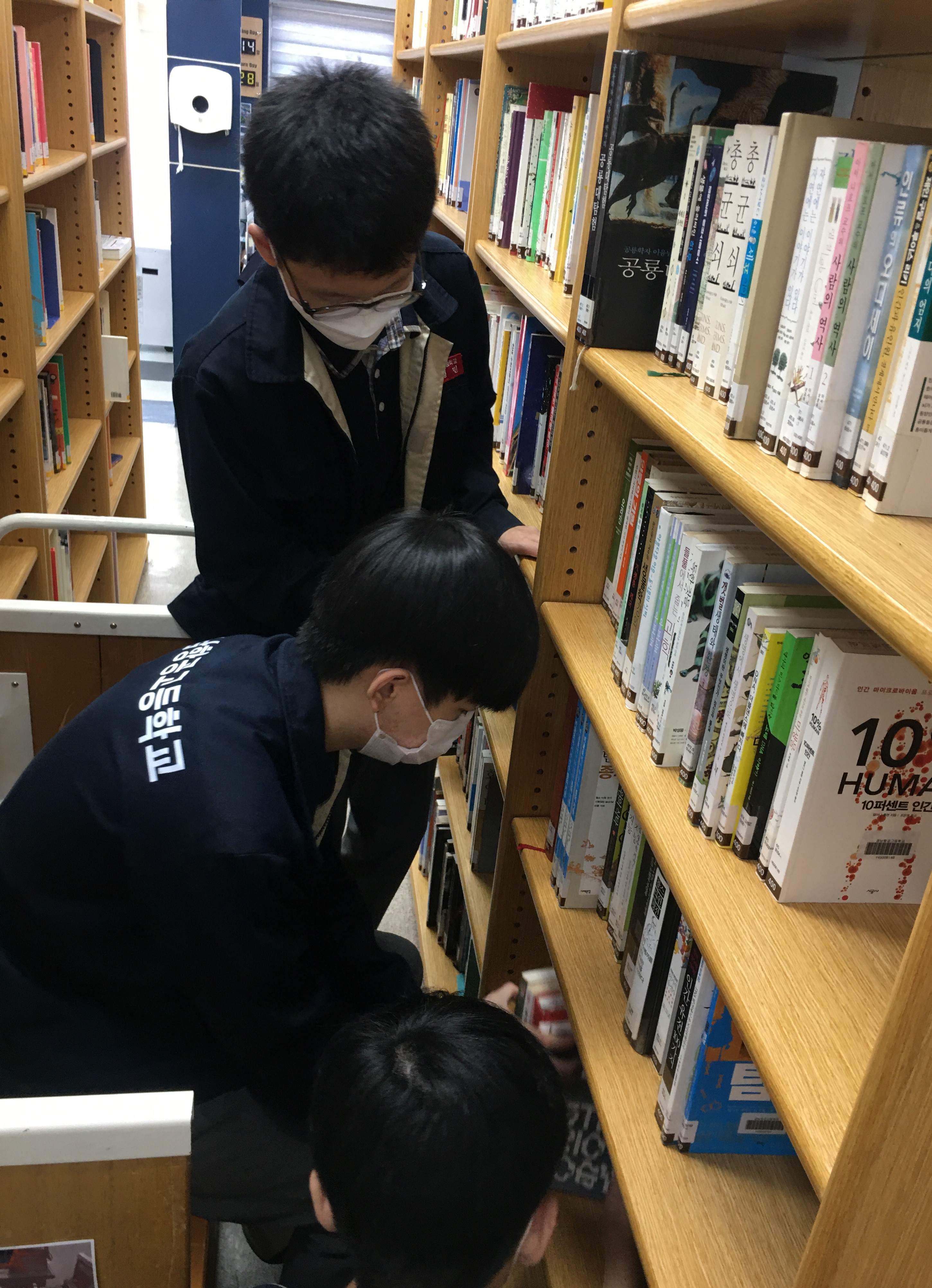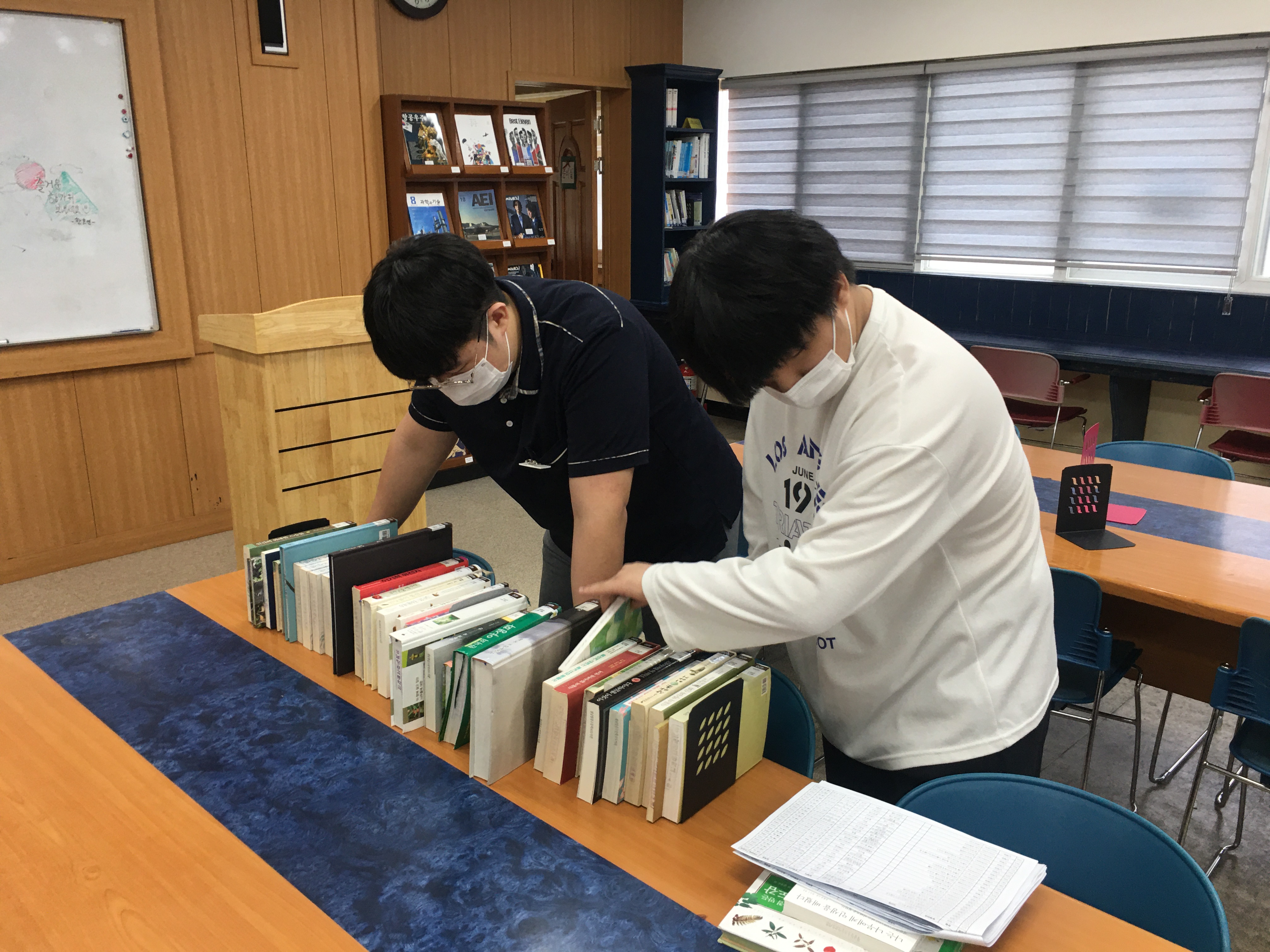 이곳저곳에 흩어져 있거나, 순서가 맞지 않았던 도서들을 정리하고 있는 모습입니다.