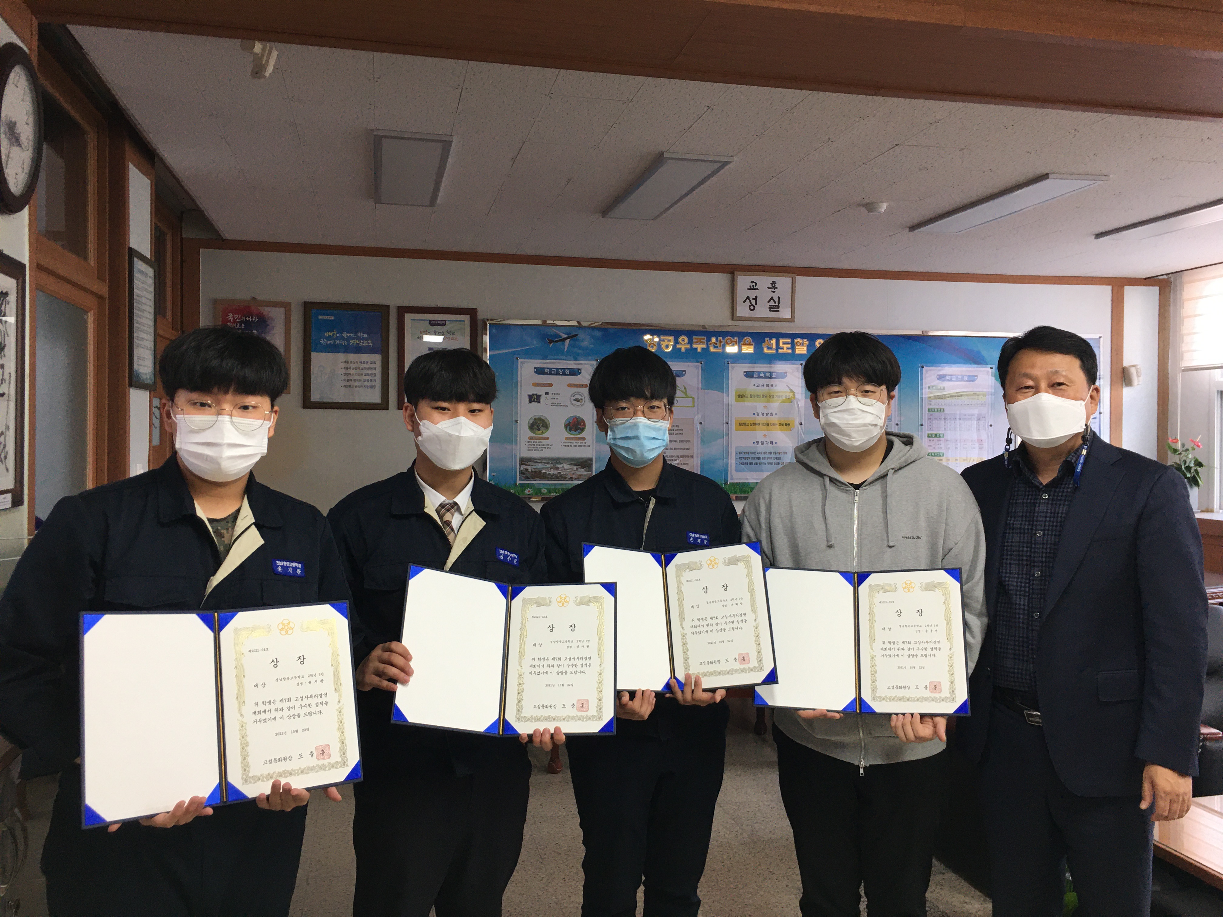 항공기계과 2학년 손O창, 송O연, 신O현, 항공기체과 2학년 윤O완