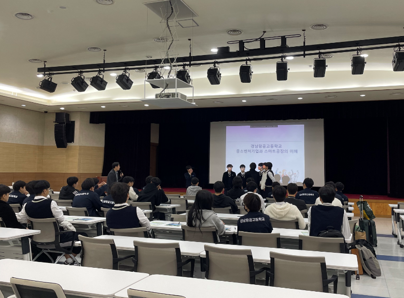 - 교육목적 : 경남항공고등학교 1학년 재학생을 대상으로 중소벤처기업의 이해와 스마트공장